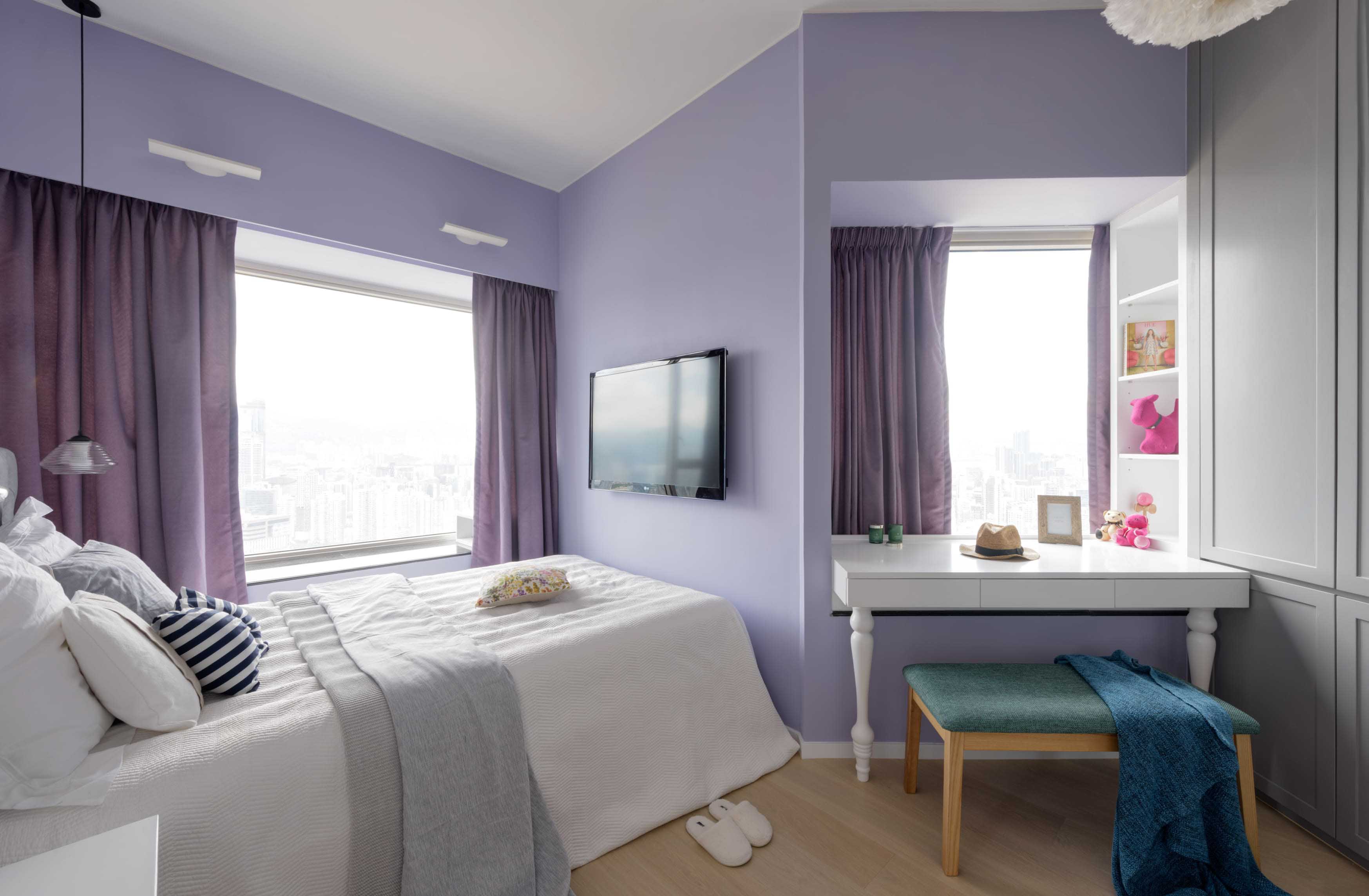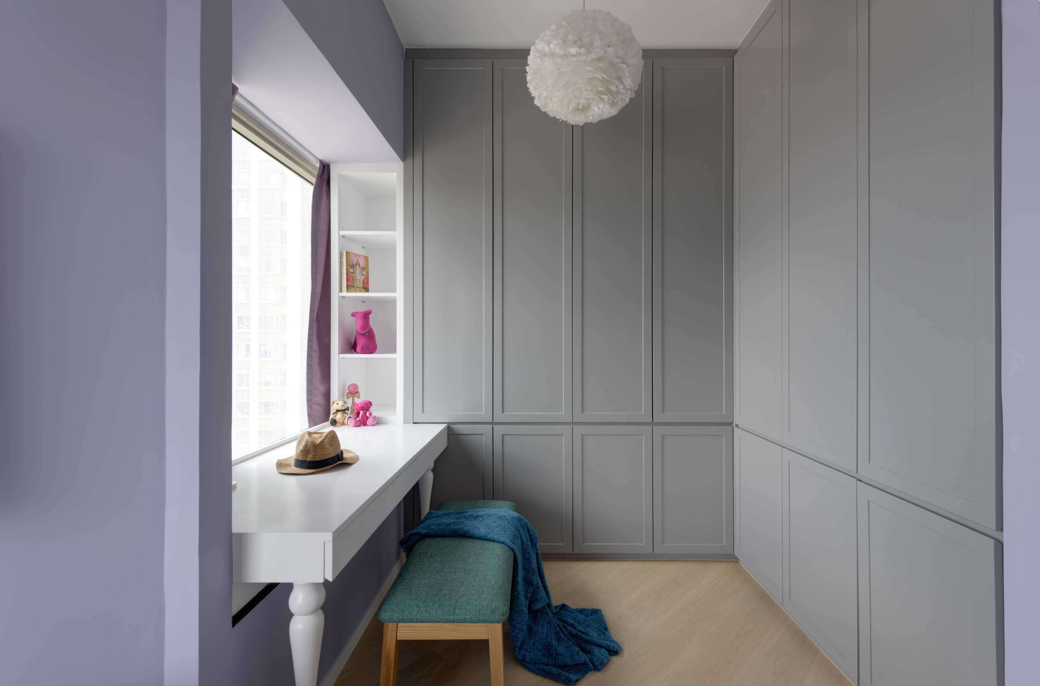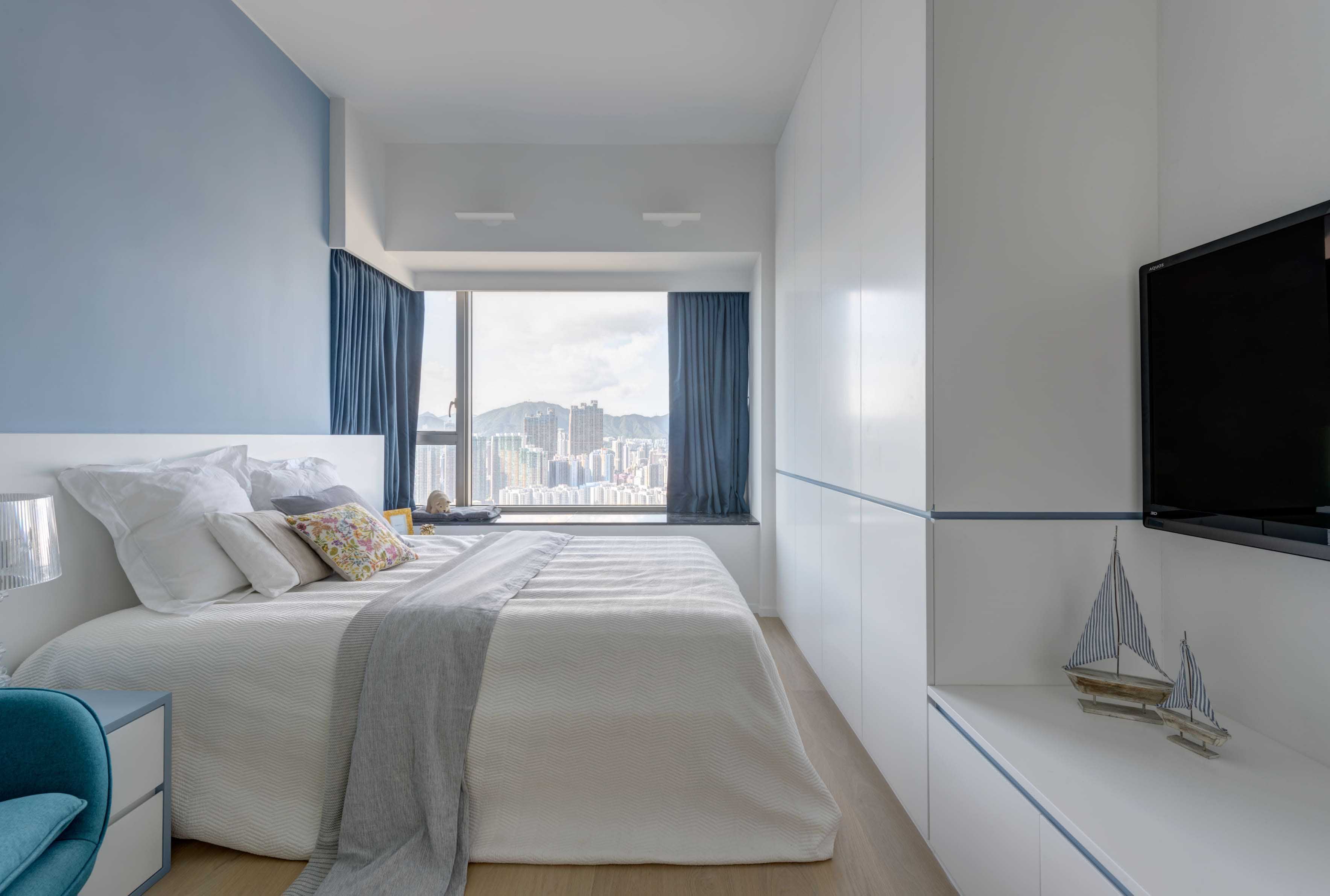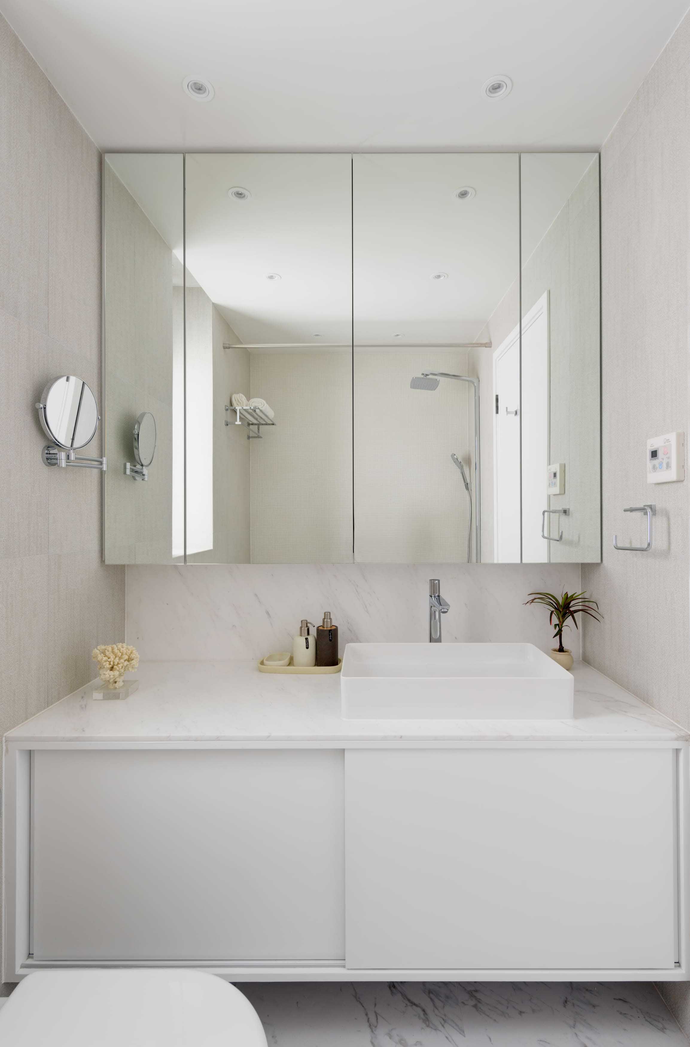 这个单位以深色地板配以浅灰色及黑色云石做配搭,梳化背的墙身我们特别设计了一幅回忆墙,方便户主摆方相片.