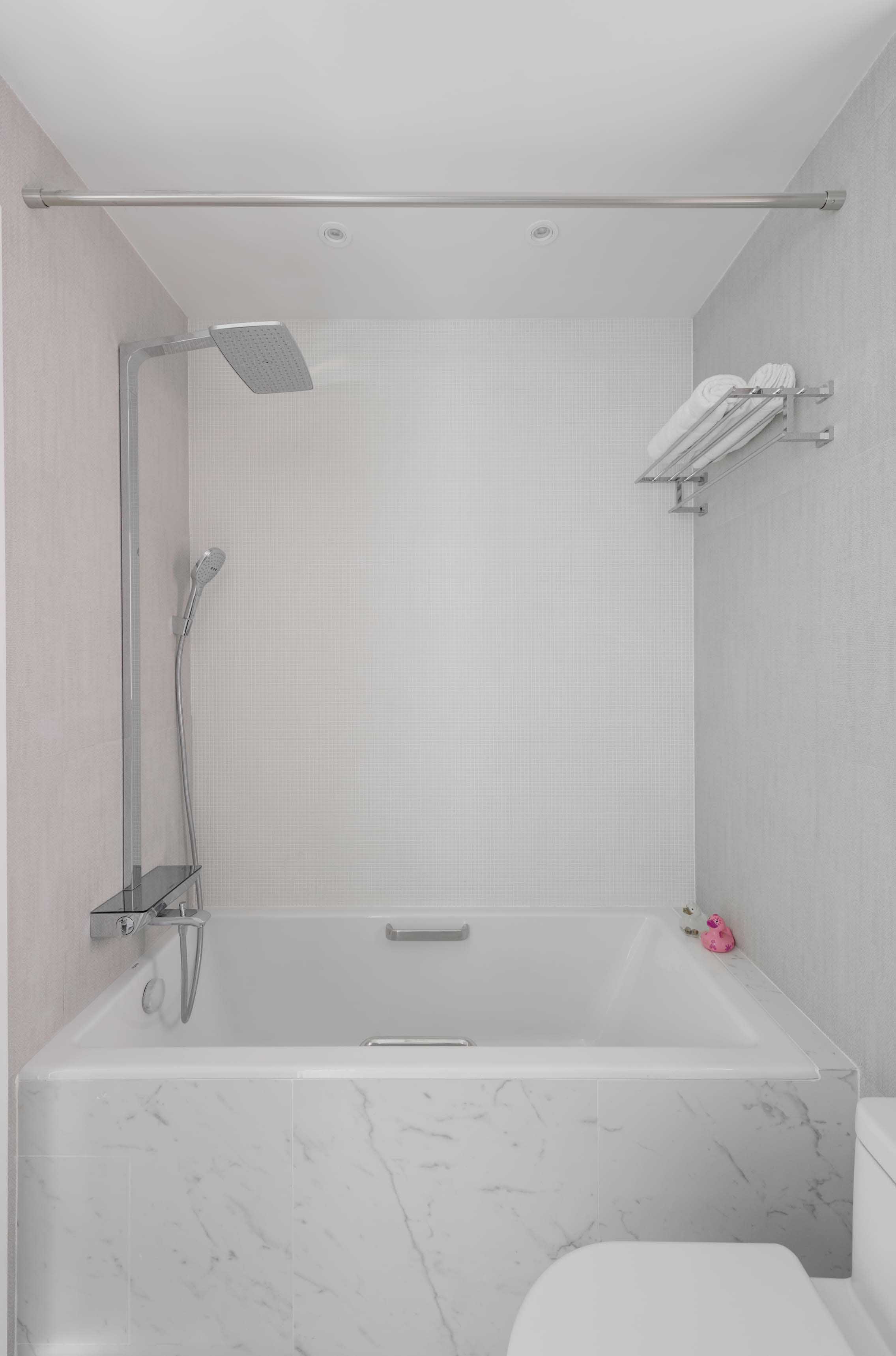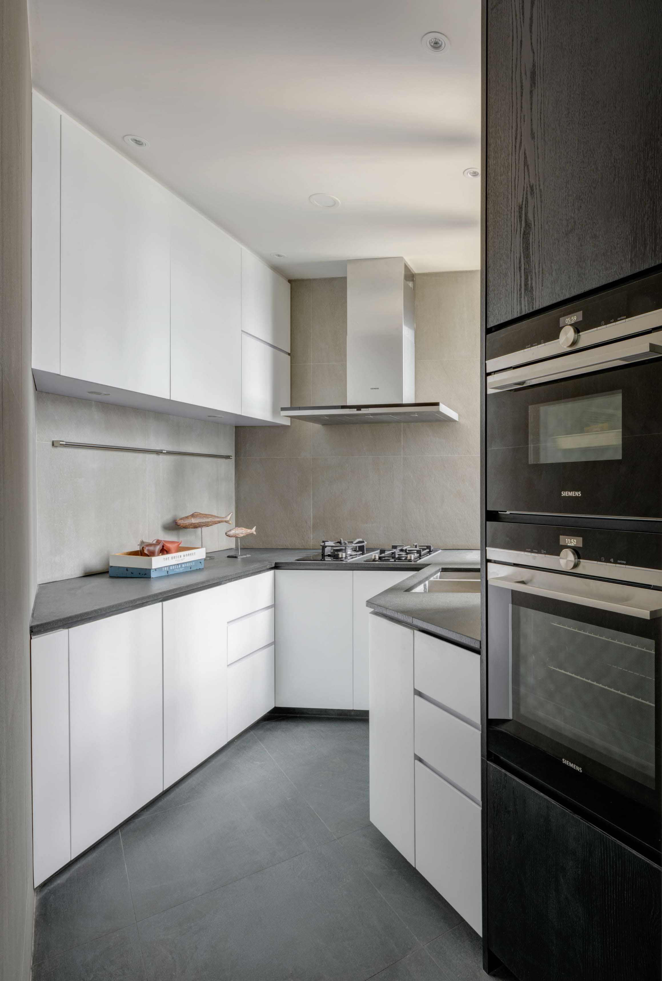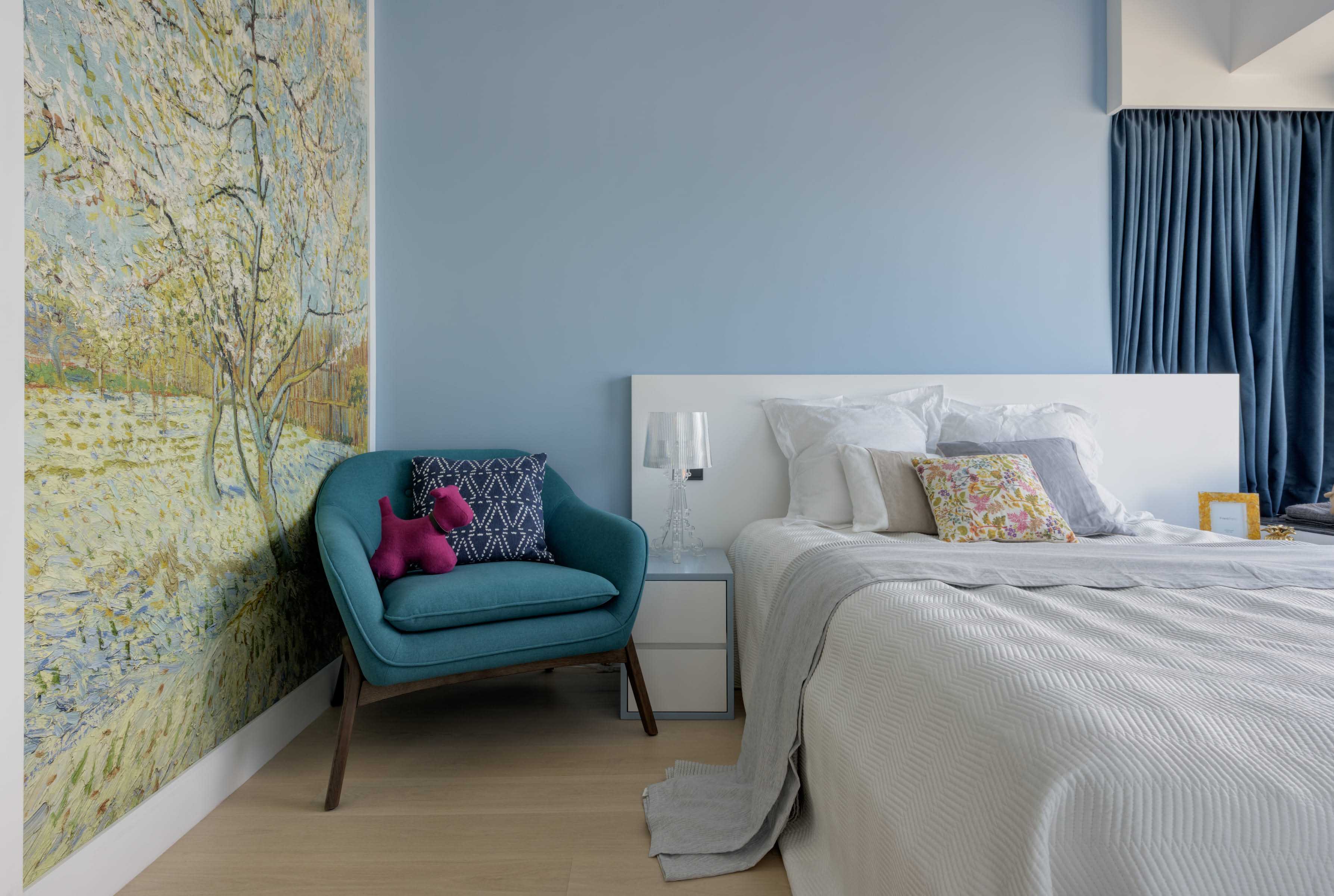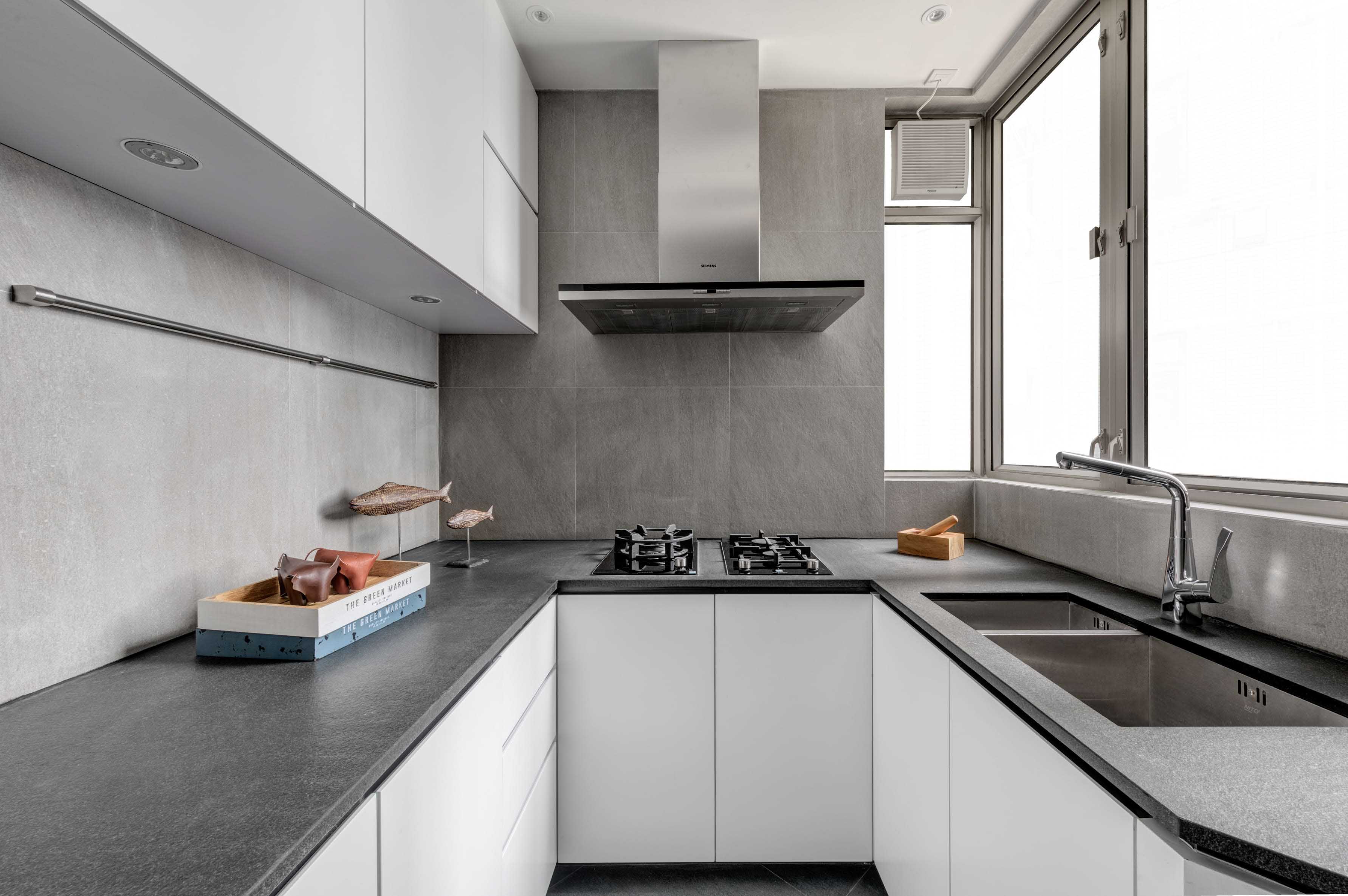 这个单位以深色地板配以浅灰色及黑色云石做配搭,梳化背的墙身我们特别设计了一幅回忆墙,方便户主摆方相片.